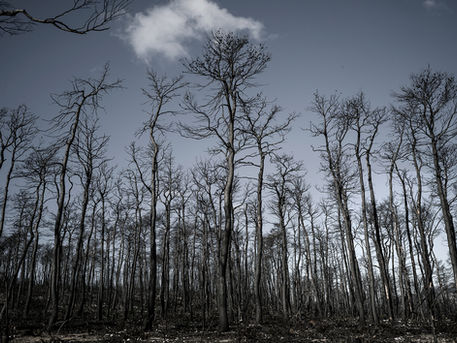 Aujourd'hui, cette forêt n'existe plus, elle a été ravagée par des feux gigantesques en août 2021. Je suis retournée à Evia. De cette merveilleuse forêt, il ne reste que des troncs carbonisés dressés sur une terre à nu. Les habitants de l'île, ont vécu un cauchemar. Ils ont perdu leur travail, leurs bêtes, leurs ruches parfois leur maison. Ils ont aussi perdu leur paysage.